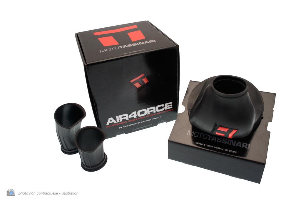 Avec l’installation de AIR4FORCE, vous obtenez une meilleur réponse dès l’ouverture des gaz. De plus, selon le cornet d’admission choisi, vous acquérez un gain de puissance à bas et mis régime (avec le cornet d’admission court), ou un gain de puissance à mis et haut régime (avec le cornet d’admission long)