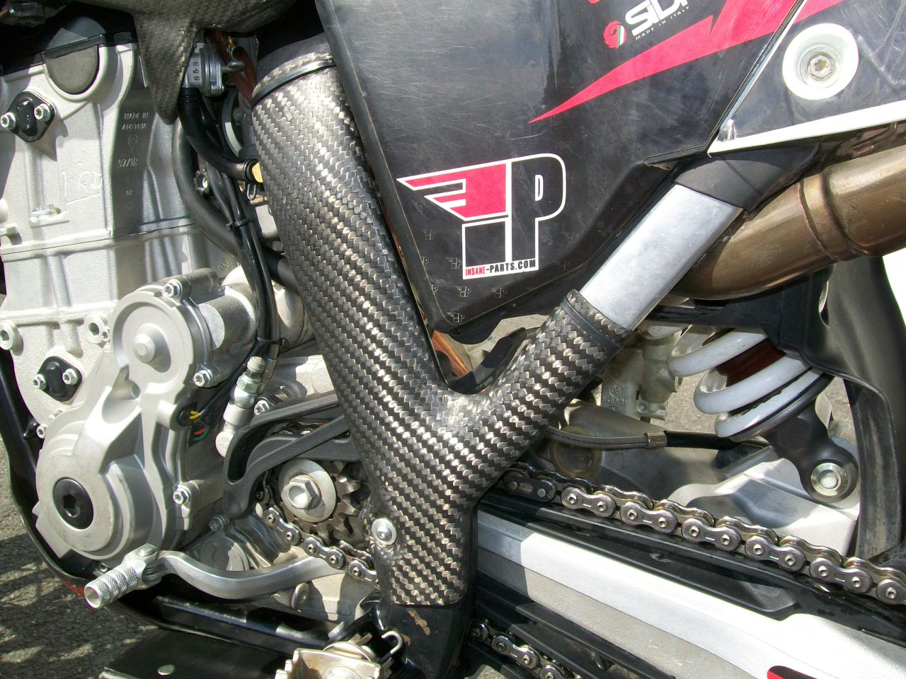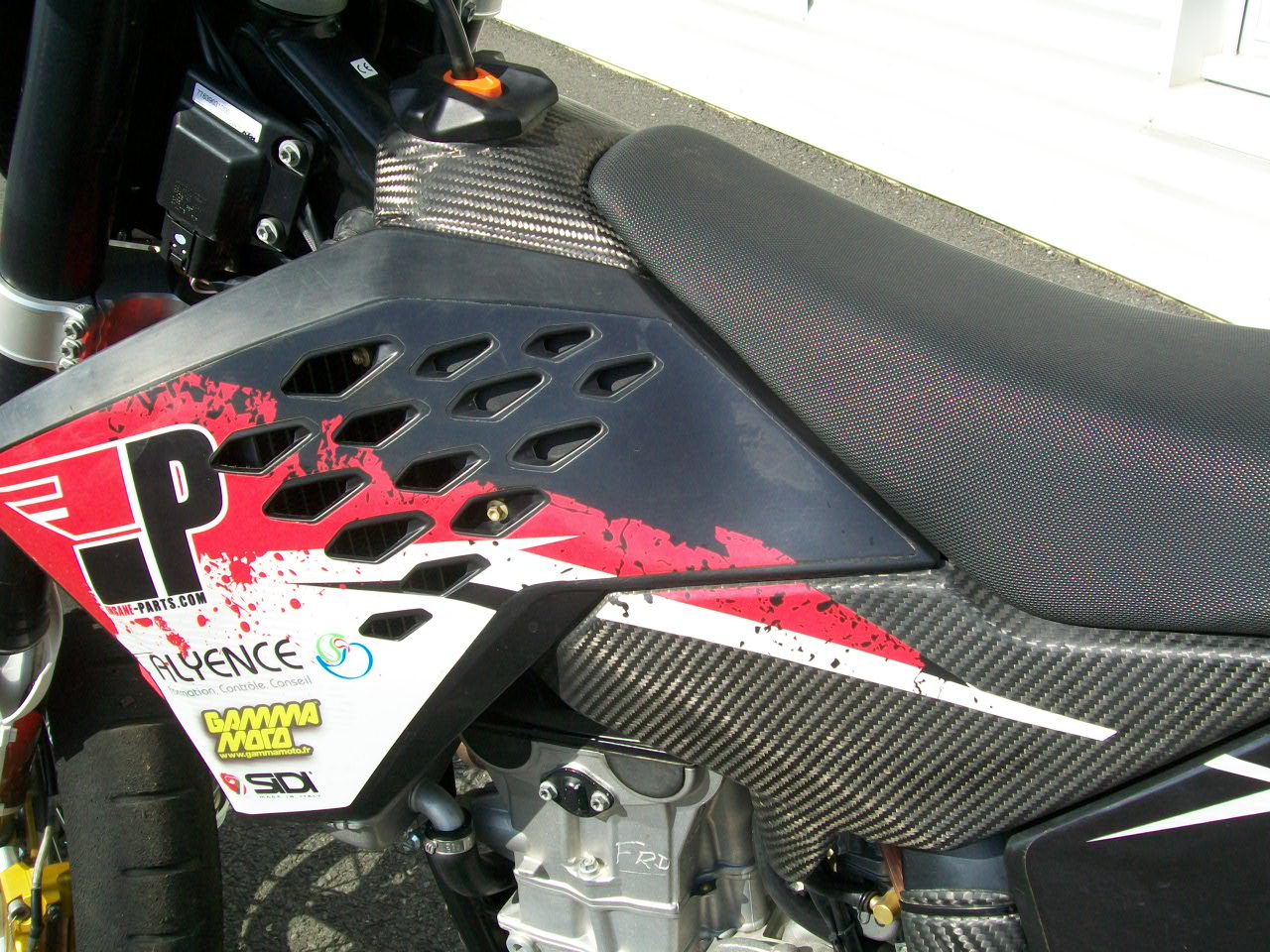 Les protections de cadre en carbone sont signées DBS Factory (http://www.dbs-factory.com/) ainsi que le superbe cache réservoir et sabot moteur.