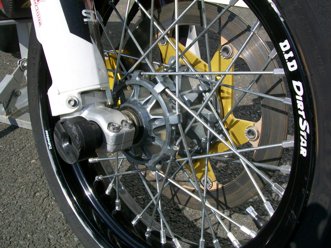 Les jantes Behr d’origine on laissées place à des DID Tubeless de chez Mecawheel (http://news.mecaservices.fr/) en taille 16.5×3.50 pour l’avant et 17×5.00 à l’arrière avec moyeux racing , elles ont l’avantage d’être sans chambre et d’une solidités irréprochable.