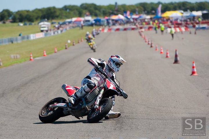 La piste emménagée sur l’aérodrome de Figeac avec ses grandes lignes droite à permis au moteur de s’éxprimé pleinement, une partie terre mono-tajectoire avec un enchaînement rapide à l’entrée à permis aux nombreux amateurs de supermotard de voir un excellent spectacle.