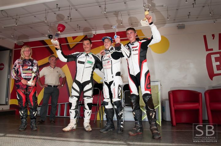 Le poduim se voit complété par le local Emmanuel Sol ( Team Blot – Suzuki) qui à eu forte affaire avec Maxime Lacour (Team MHRM – TM) et Lucas Berthoux (Suzuki).